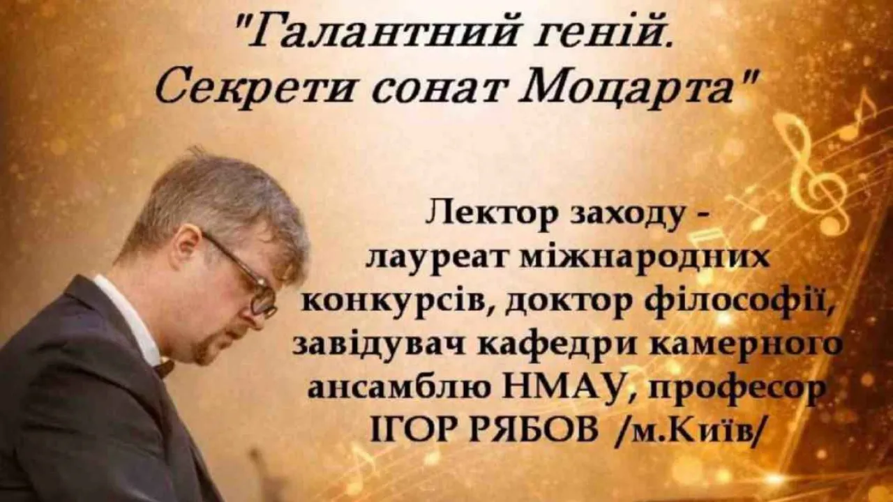 Лекція-концерт на тему: "Галантний геній. Секрети сонат Моцарта" за участю лауреата міжнародних конкурсів, доктора філософії, завідувача кафедри камерного ансамблю НМАУ, професора Ігоря Сергійовича Рябова (м.Київ)