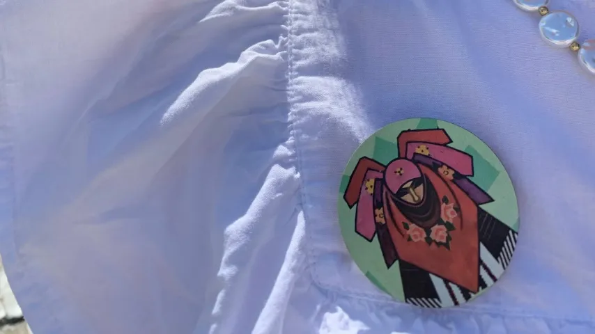 Значок на дерев'яній основі образом Подолянки художника Олександра Грена